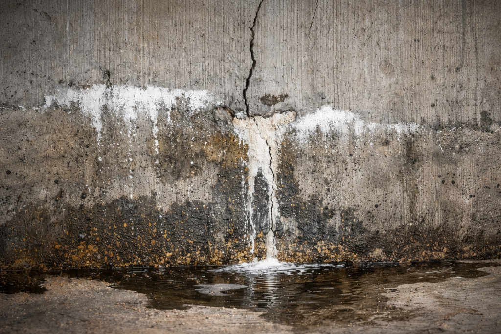 Efflorescence is another red flag. This white, chalky residue forms when water moves through concrete or masonry. It signals ongoing moisture migration, not a surface issue.